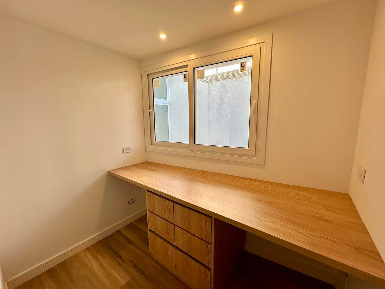 Segundo salón o espacio flexible con escritorio para dos personas, ideal home office.