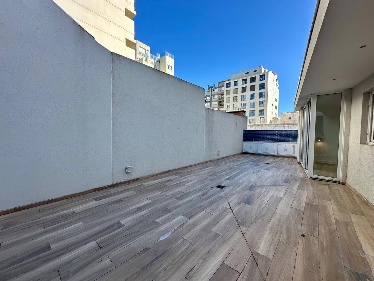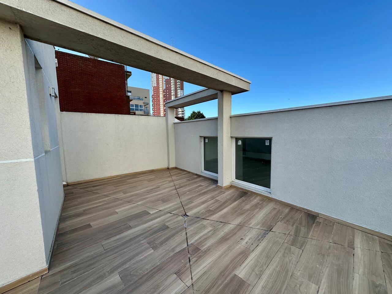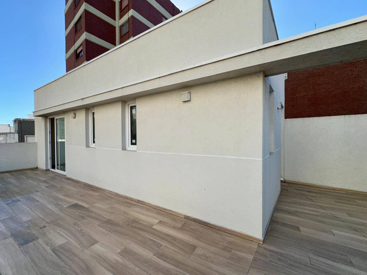 - La terraza en forma de L cuenta con la posibilidad de ampliación para generar un tercer dormitorio o salón en planta alta.