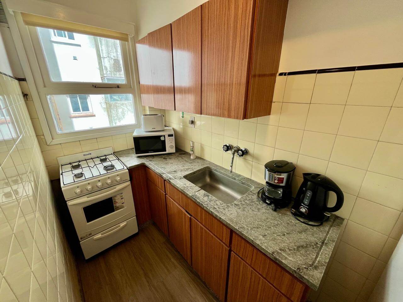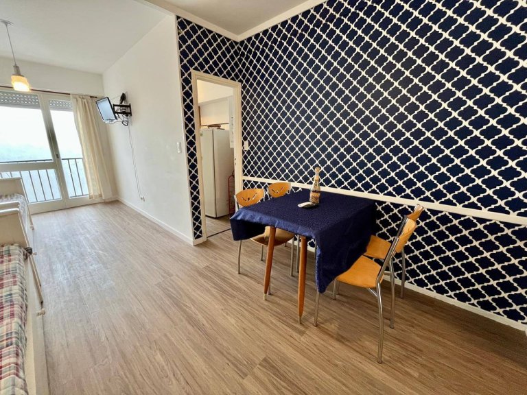 Descripción: Departamento de 1 ambientes al contrafrente. Comodo placard. Baño completo. Living comedor con balcón al contrafrente, cuenta con 2 cama marinera. Cocina separada. Capacidad: hasta 2/4 personas.