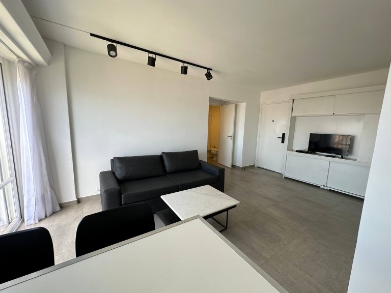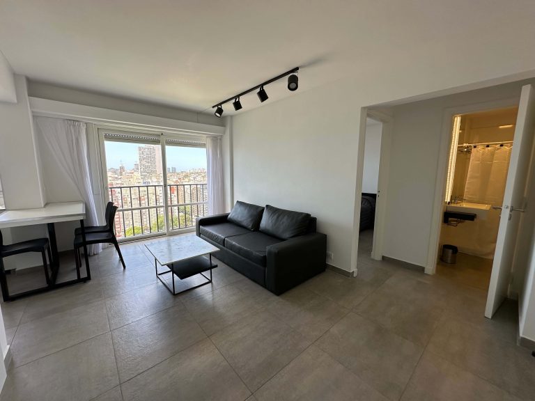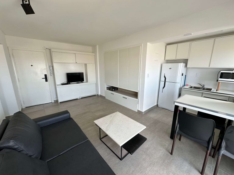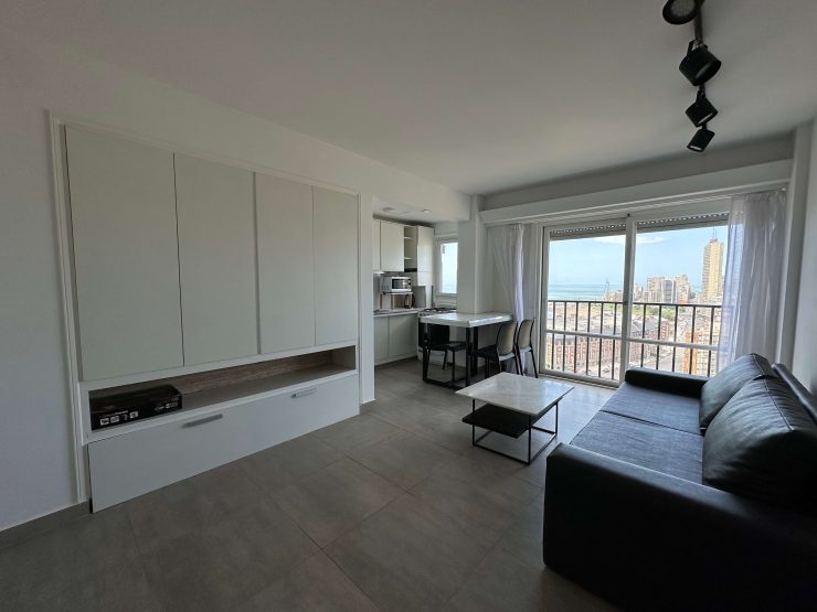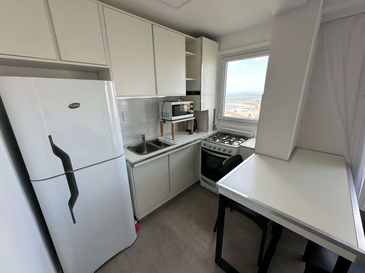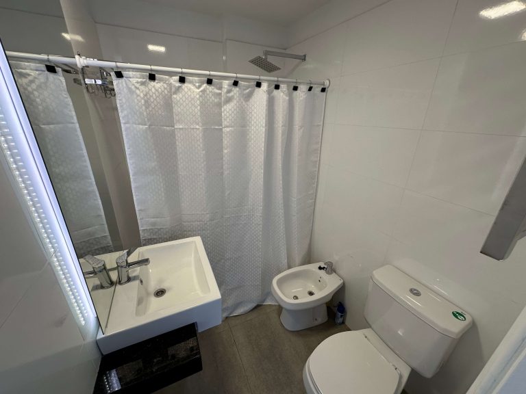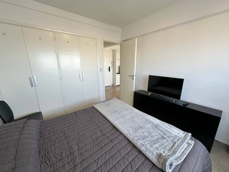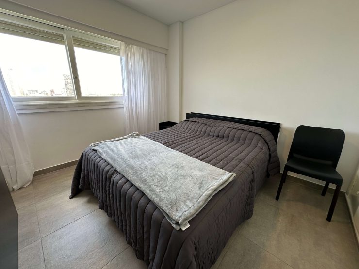Dormitorio con colchón matrimonial, amplio placard y vistas. Baño completo.