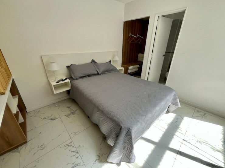 Se encuentra equipado con sommier matrimonial y TV LED. Cuenta con internet.