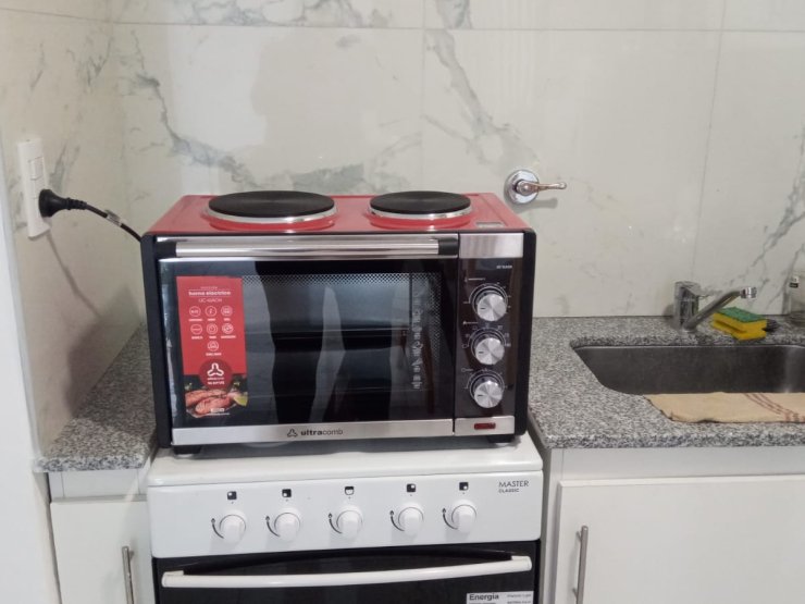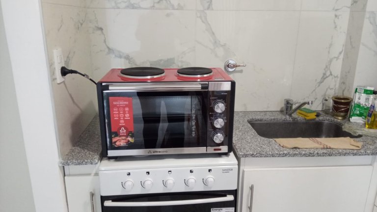Baño completo y cocina equipada con termotanque electrico y horno con anafes electrico.