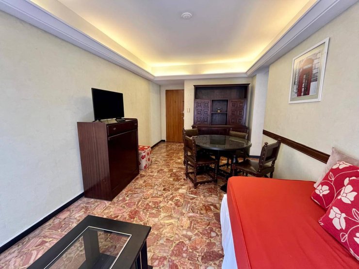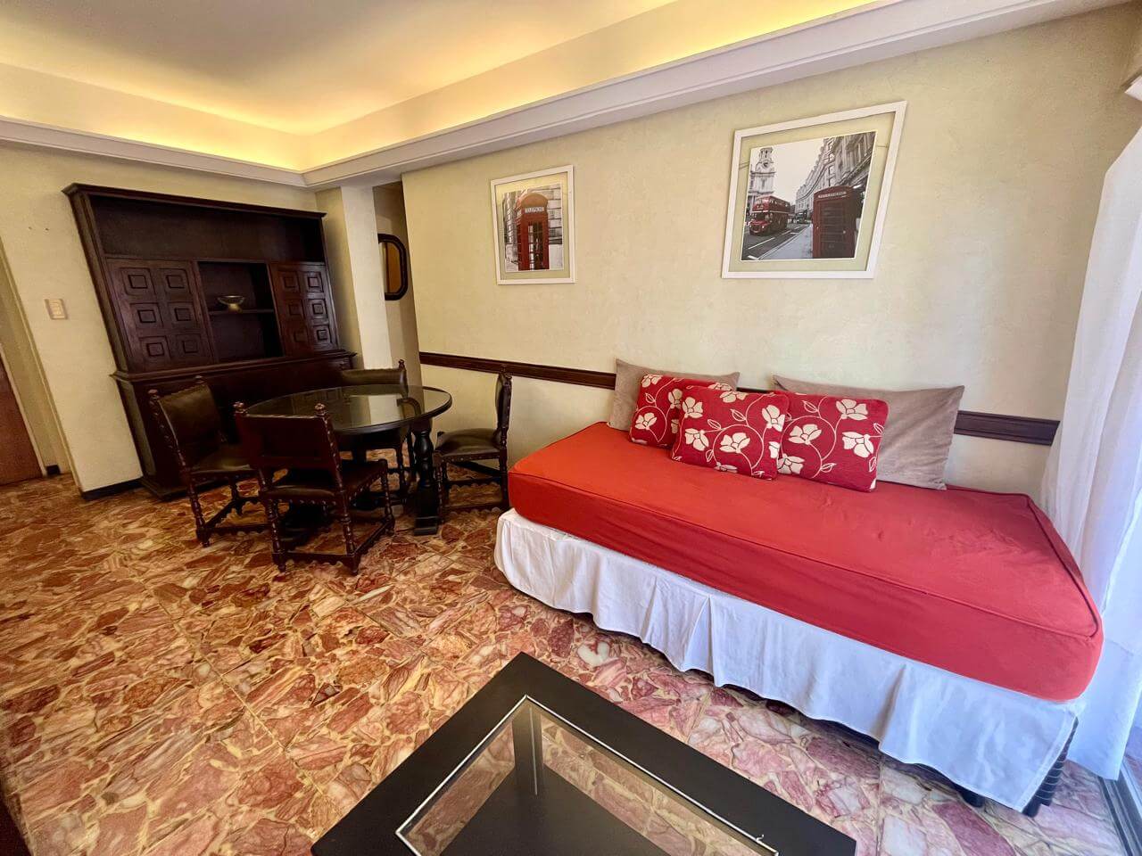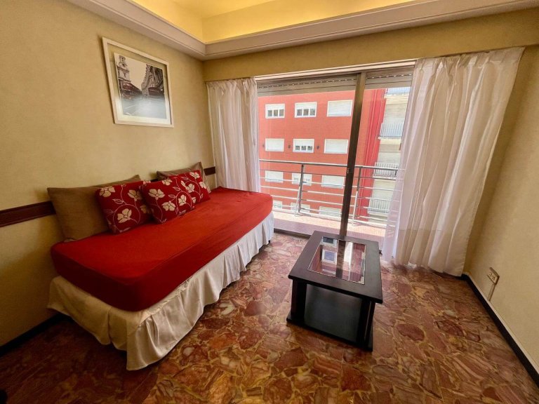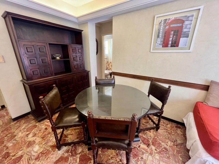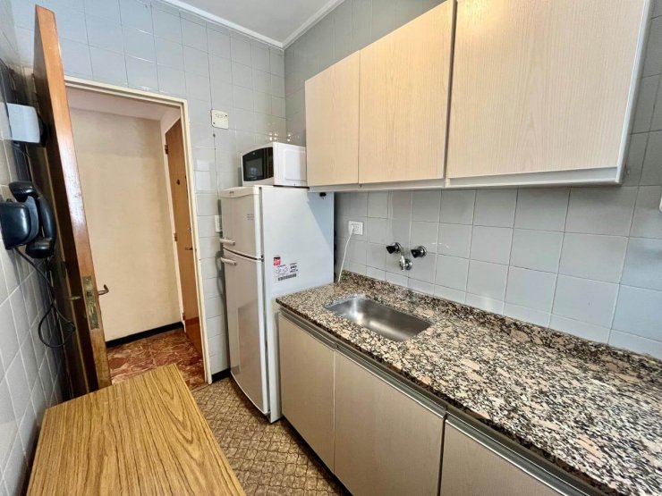 Living comedor a la calle con balcón corrido y vista lateral al MAR equipado con sillón cama de dos plazas en el living, dormitorio con cama de matrimonio con colchón nuevo de resortes. Baño completo reciclado a nuevo y cocina separada remozada. Se encuentra en excelente estado.