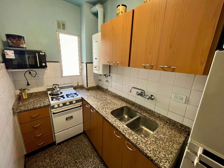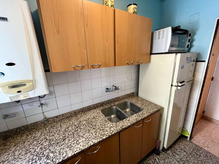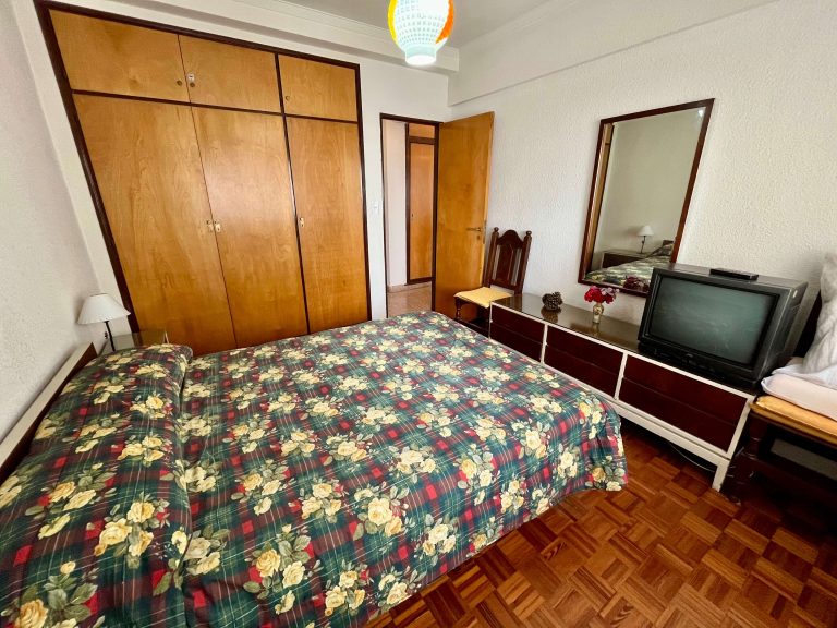 Dormitorio con colchón matrimonial. Baño completo y cocina separada. Sillón cama y TV.