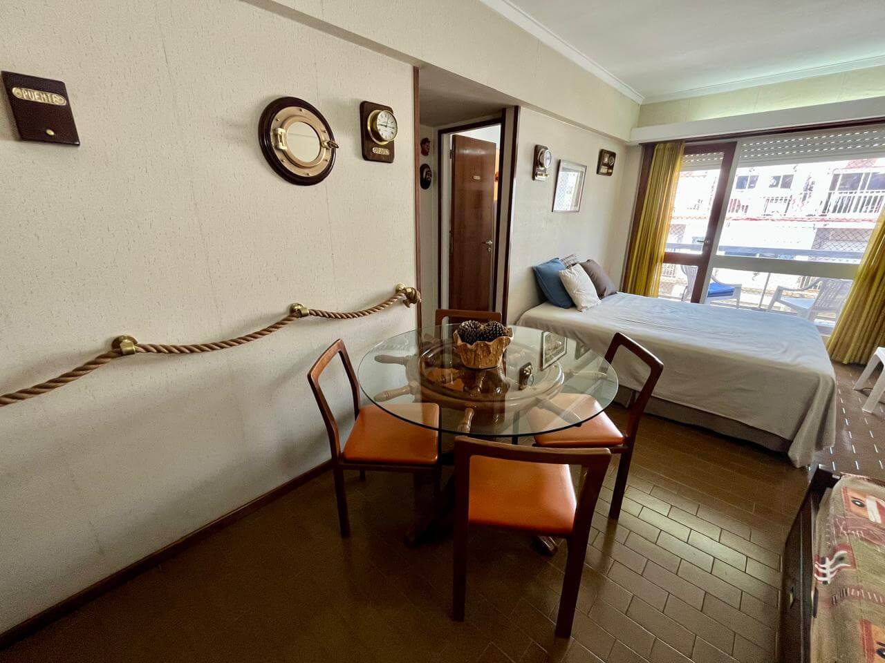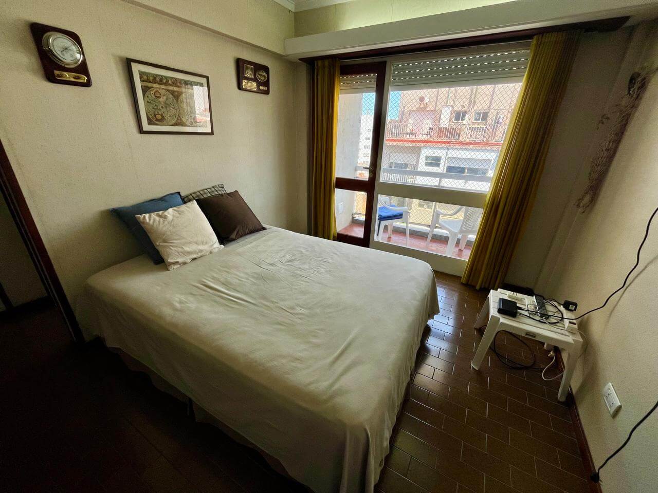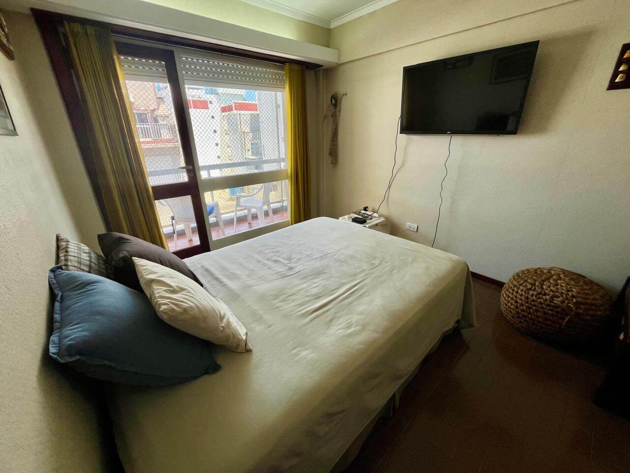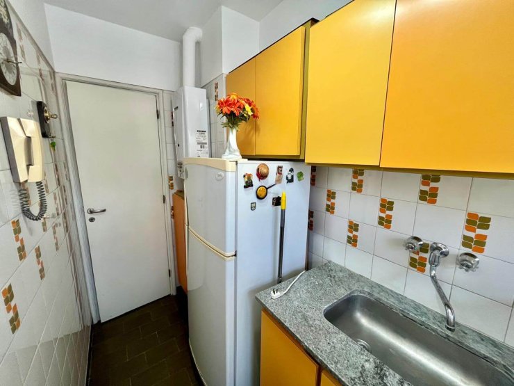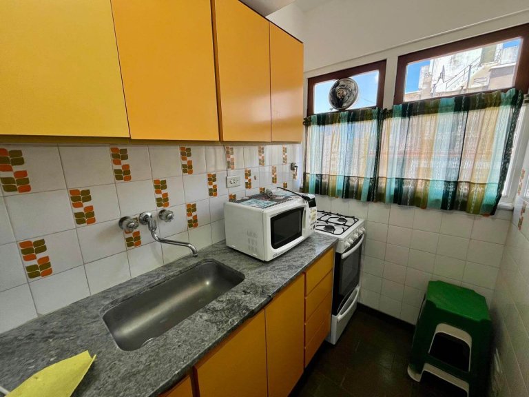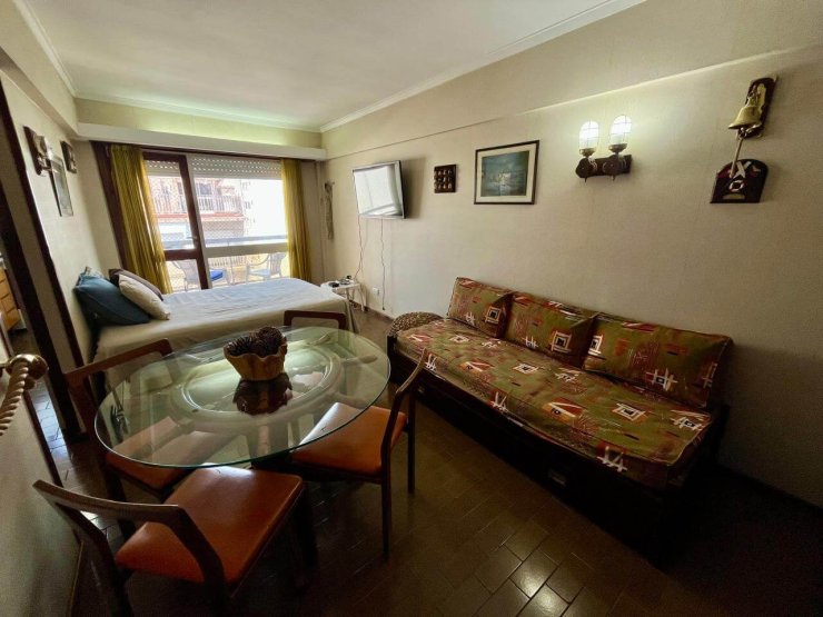 Ambiente a la calle con balcón saliente, equipado con somier matrimonial y cama marinera. Baño completo y cocina separada. Se encuentra en excelente estado.