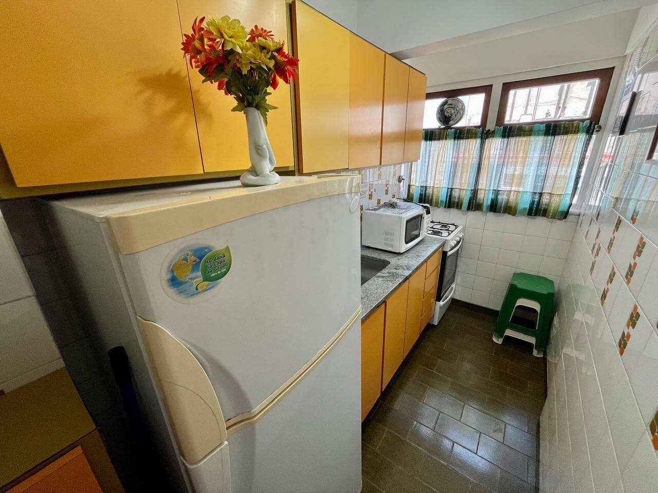 Descripción: A tres cuadra de la playa y de la Plaza Colon se encuentra este departamento muy cómodo y completo. Edificio de corte moderno.
