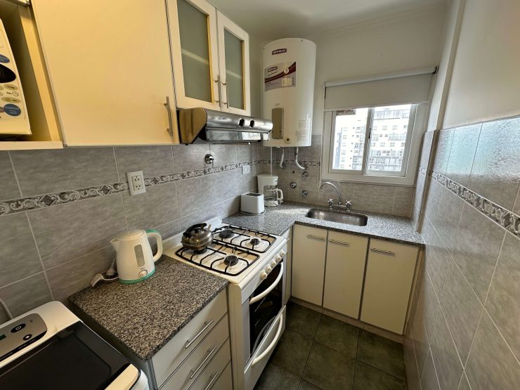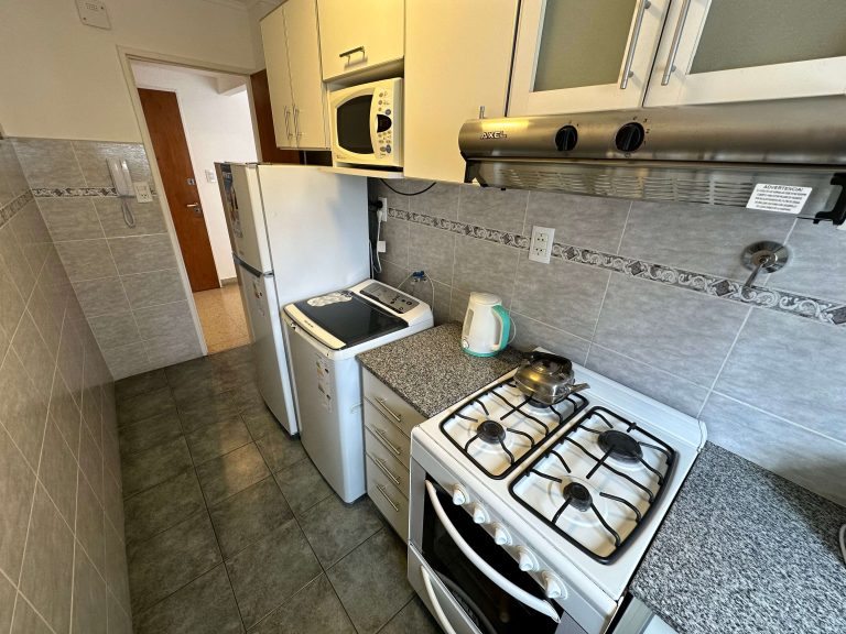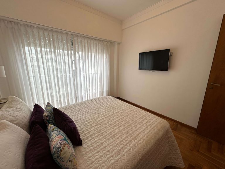 Dormitorio con colchón matrimonial de resortes equipado con TV 32 pulgadas. Baño completo y cocina separada. Al ser una unidad renovada es de destacar el óptimo estado en el que se encuentra. Cuenta con internet WiFi de 100 Megas.