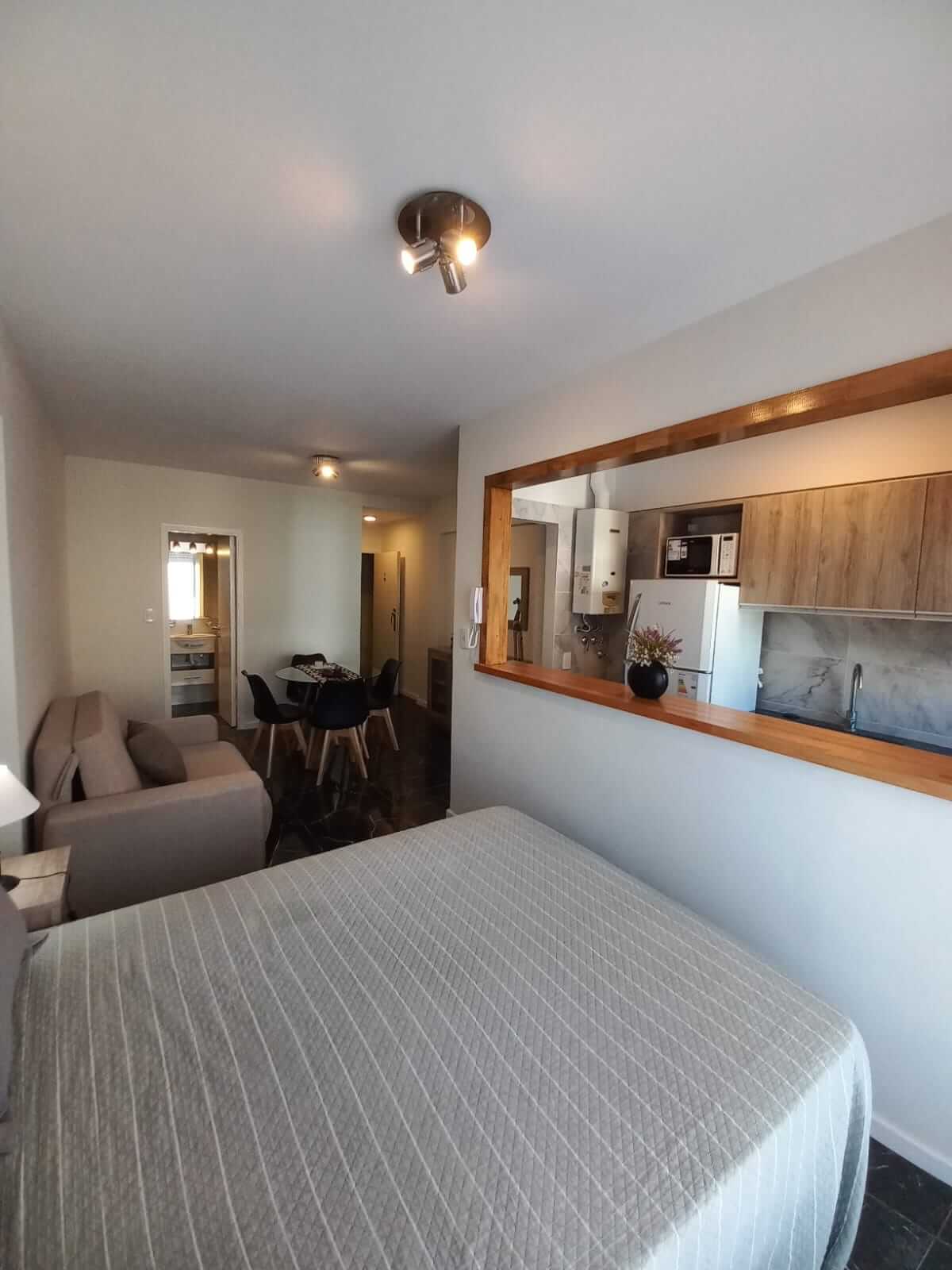 - Cocina equipada con heladera, cocina, termotanque eléctrico, lavarropas y microondas.