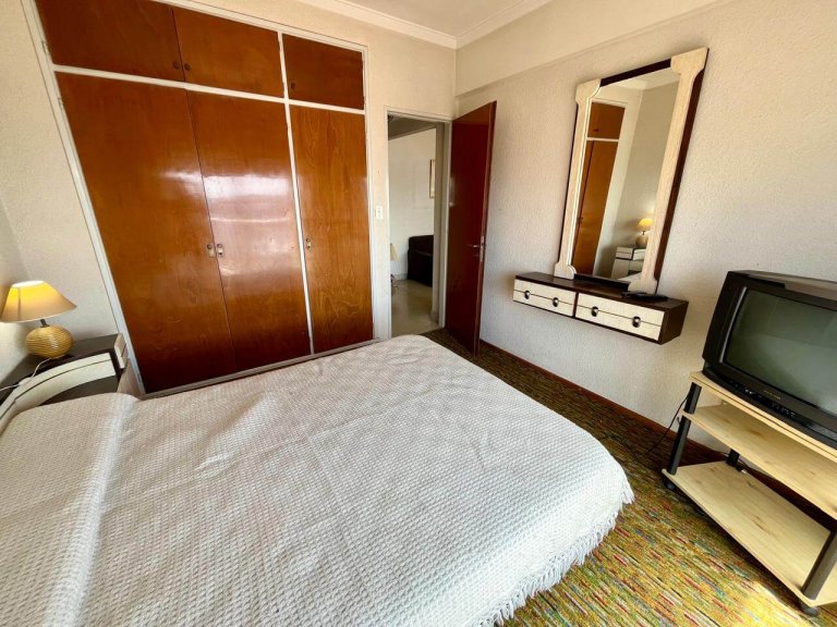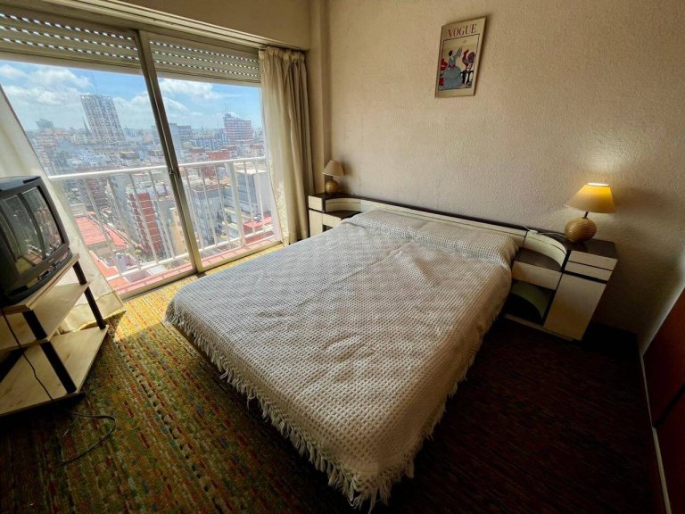 – Dormitorio con placard empotrado, pisos de parquet (bajo la alfombra) y acceso a un segundo balcón francés con vistas laterales al mar y panorámicas a la ciudad.