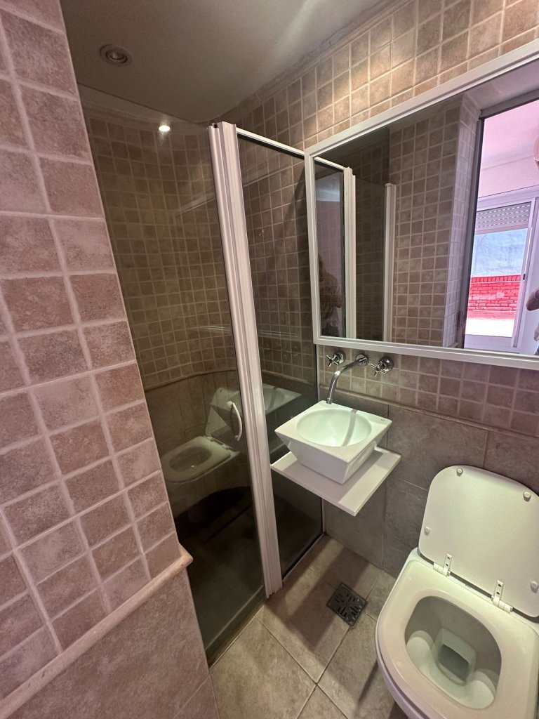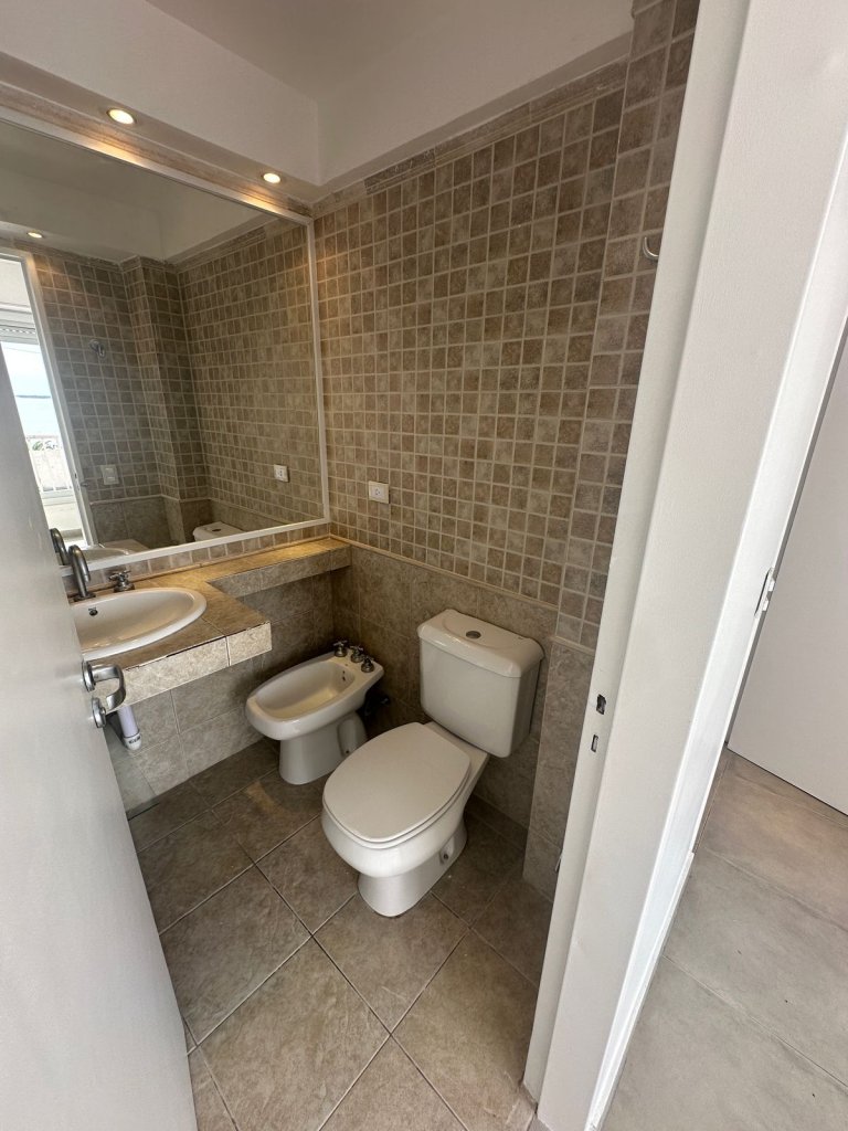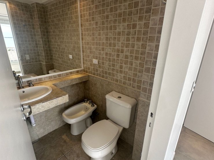 - Dormitorio principal a la calle (3,2 x 3 m) con balcón privado, placard empotrado, split frío/calor y baño en suite revestido en porcelanato (2,2 x 1,5 m).