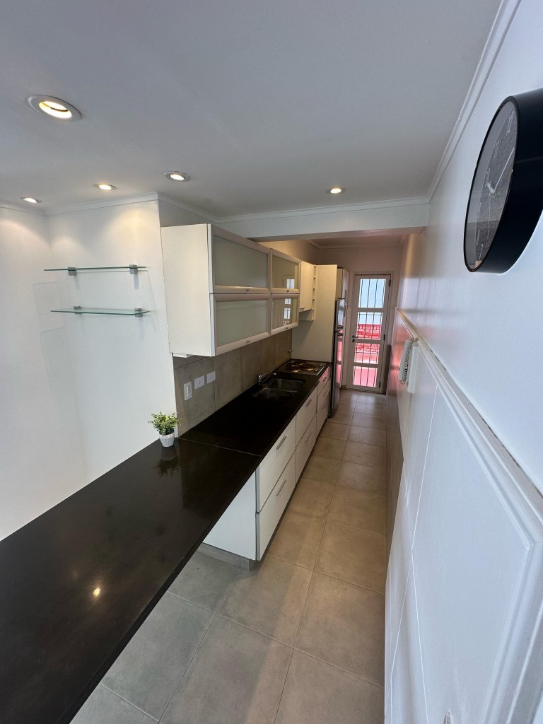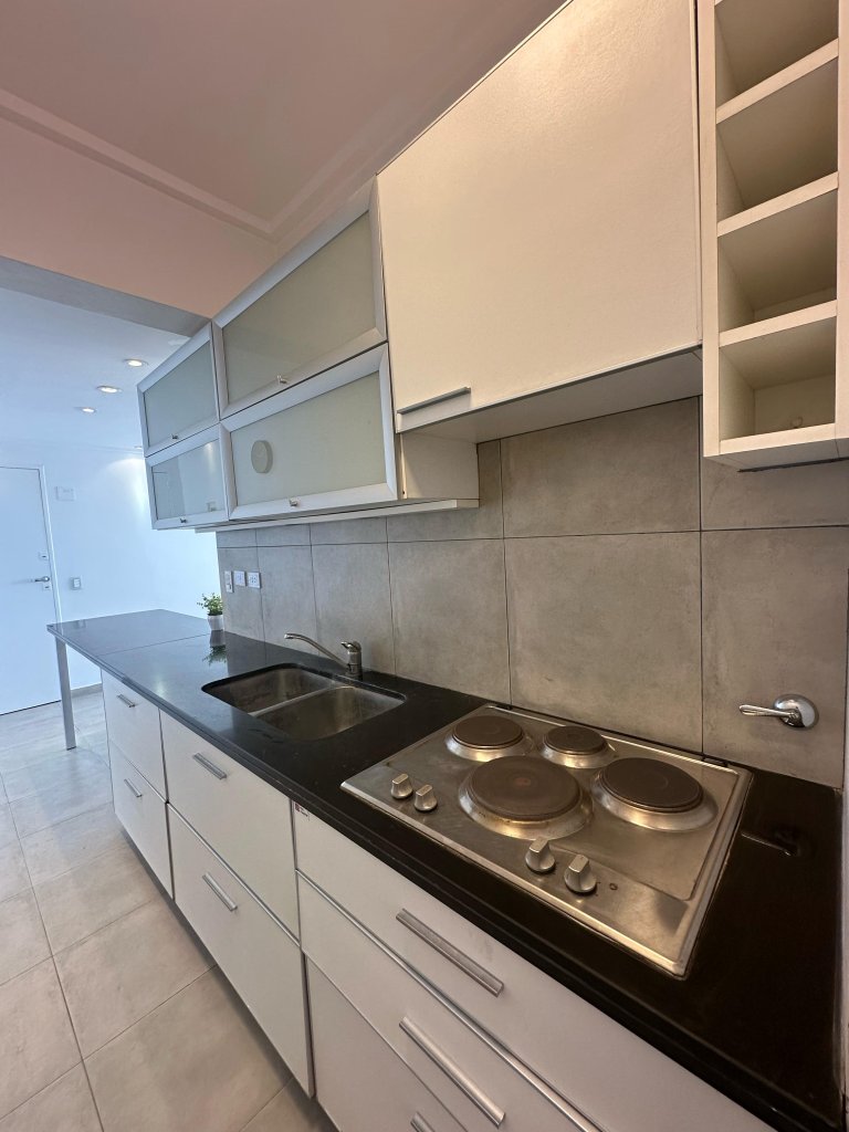 - Cocina separada (4 x 1,5 m) revestida en porcelanato, equipada con anafe y con acceso directo al balcón terraza.