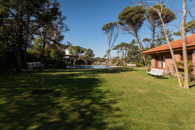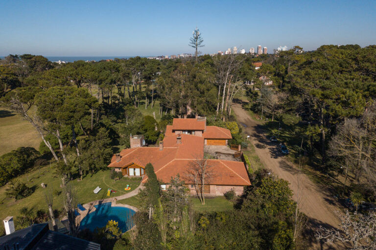 La propiedad se encuentra a tres cuadras del mar y a ocho del centro. En sus alrededores, esta propiedad se erige rodeada de pinos. Se compone de tres lotes unificados.