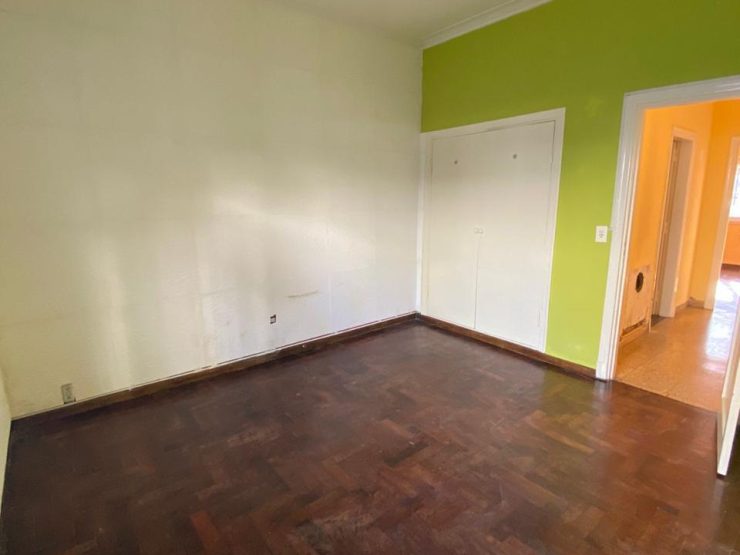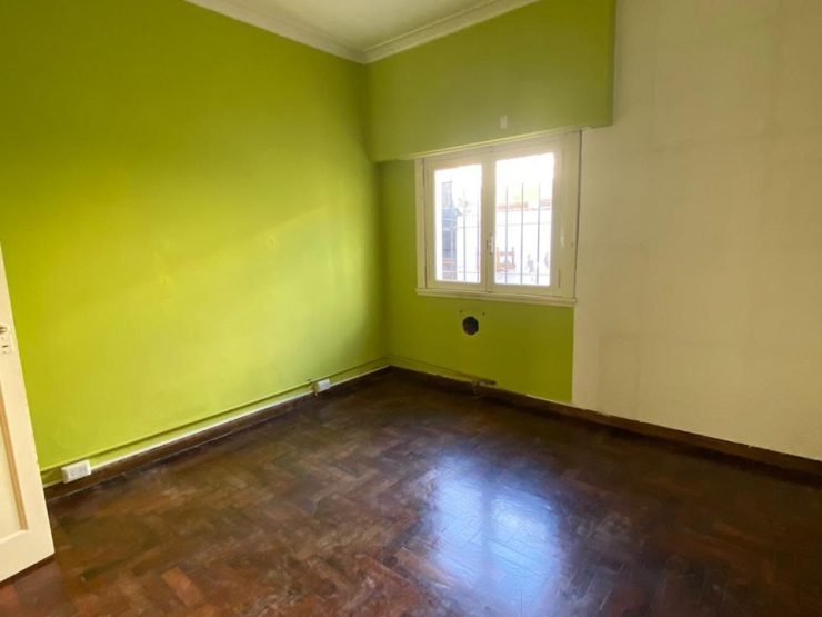 Amplios dormitorios con pisos de parquet, uno de ellos a la calle y el otro con ventanal al patio trasero.
